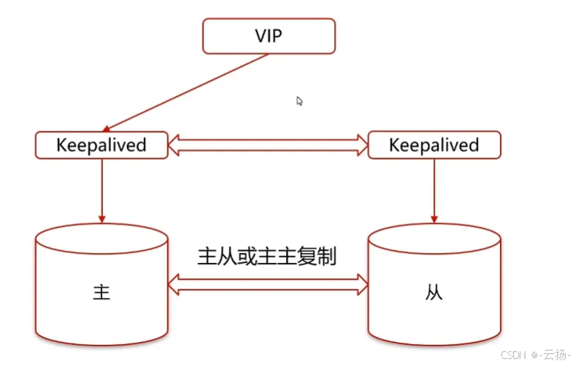 当主库宕机时,脚本检测到异常后重启Keepalived,VIP会自动漂移到从库节点,实现"故障自动切换";若为"主主架构",则两个节点互为主备,进一步降低单点风险。
