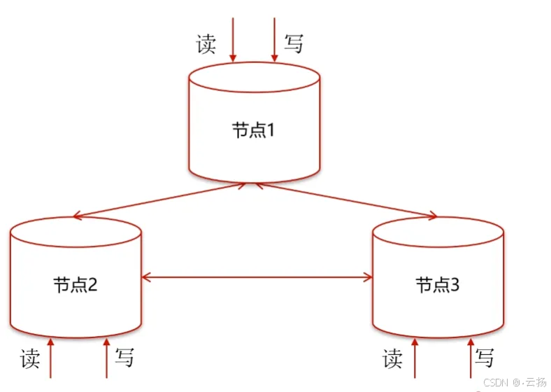 - 自动同步:任一节点写入数据后,会实时同步到其他所有节点,无需手动配置主从关系。