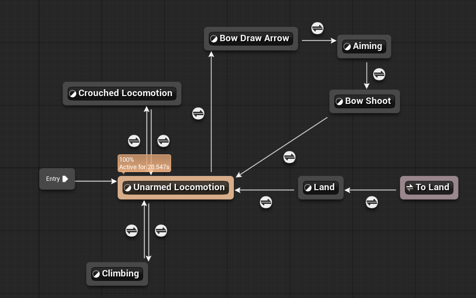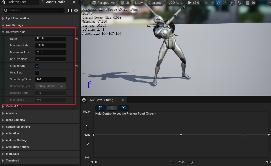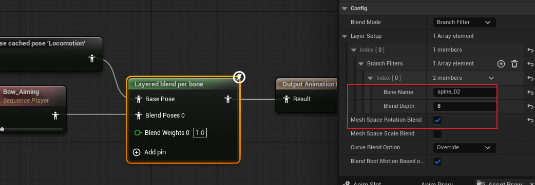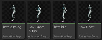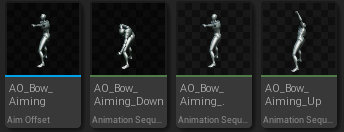 基于Bow_Aiming动画设置AO_Bow_Aiming_Forwad、AO_Bow_Aiming_Up、AO_Bow_Aiming_Down;