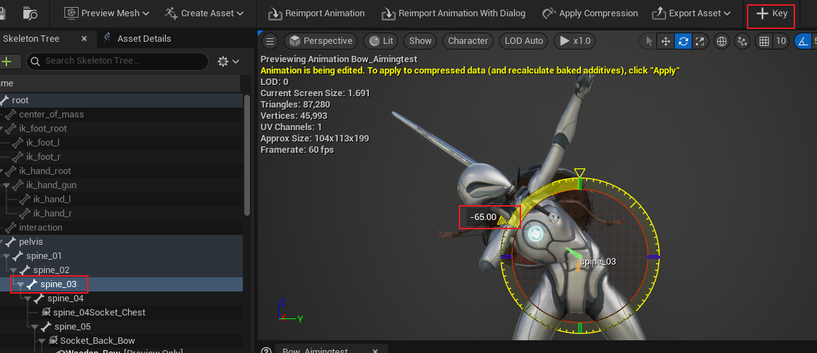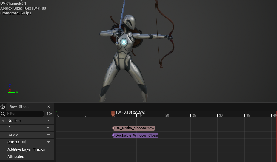 创建动画通知BP_Notify_ShootArrow,并添加到动画对应时间点;