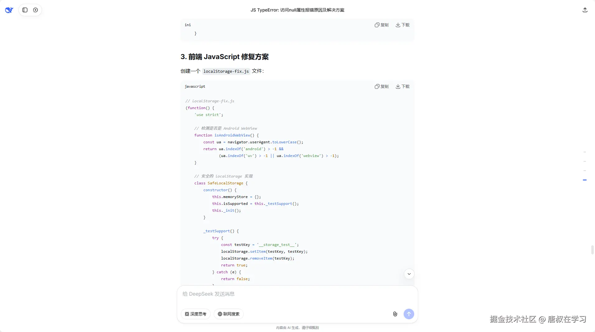 这个问题通常是因为移动端环境中 localStorage 不可用。建议实现一个自定义的存储方案,在系统 localStorage 不可用时自动降级使用。具体实现可咨询 AI 或参考相关前端兼容性方案。