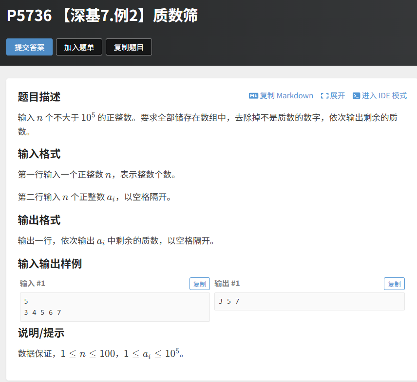 1.4 实战例题:洛谷 P5736 质数筛