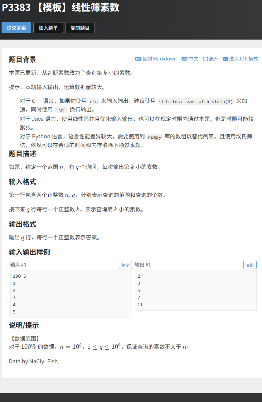 2.5 实战例题:洛谷 P3383 模板线性筛素数