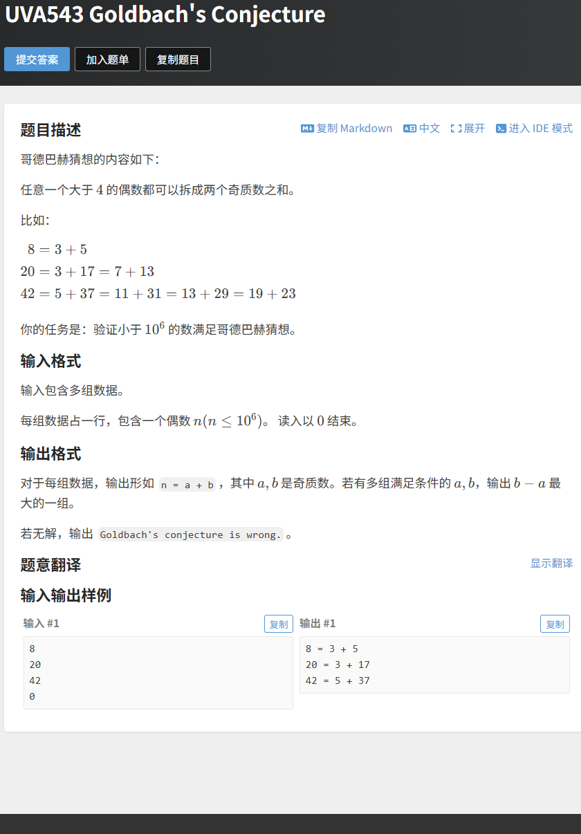 [4.2 例题 2:UVA543 Goldbach's Conjecture](#4.2 例题 2:UVA543 Goldbach's Conjecture)