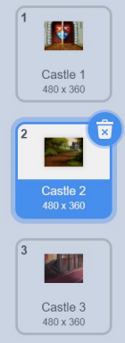 scratch舞台背景如下图所示,下列哪个选项的程序运行后,不能切换为 Castle 3? ( )