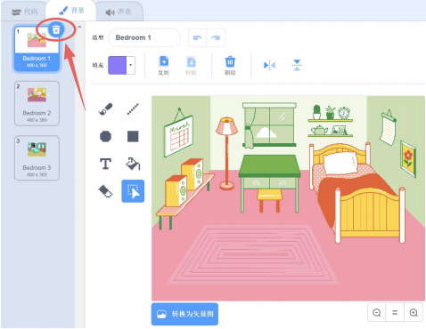 如果scratch舞台只有一个背景,那么将不能删除这个背景。
