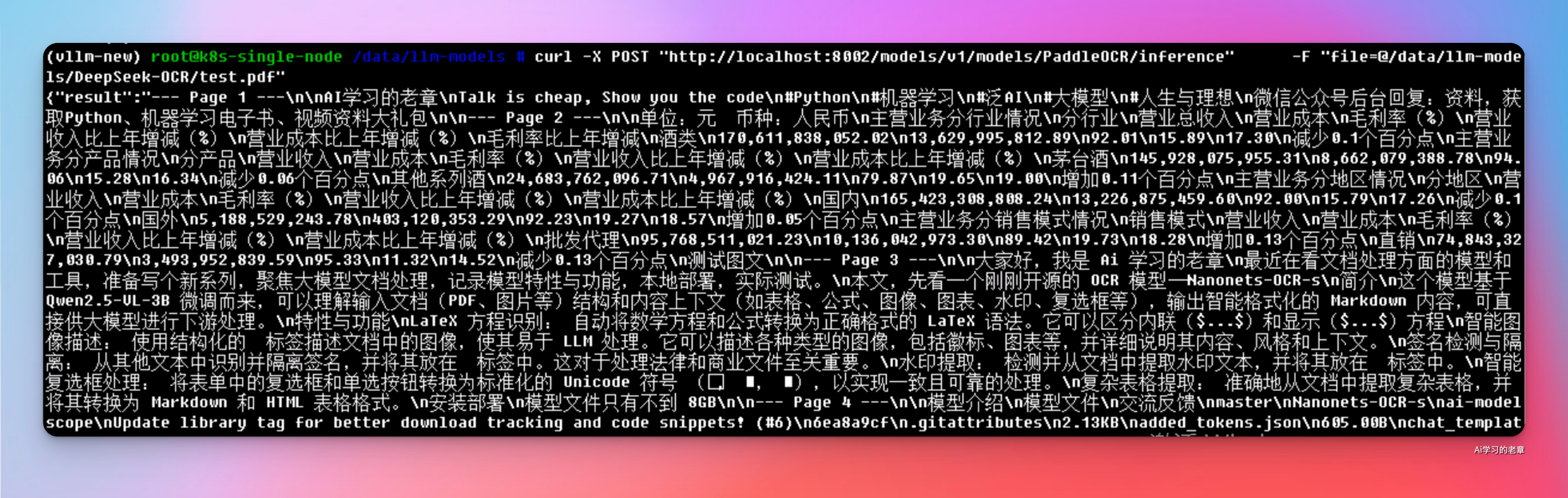 不过说实话,我测试了 N 多题目,DeepSeek-OCR 效果不如更小参数的 PaddleOCR-VL,本文我试了最新版vLLM本地部署显存占用更小的PaddleOCR,验证了api_server.py在简单修改模型名称后依然好用。
