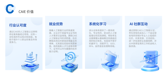 A:这其实是两条不同的路。国际大厂的证,是证明你在某个技术领域很深的"专家文凭",投入大、时间长、方向专,适合目标极其明确的技术牛人。而CAIE认证,更像是一个AI应用能力的"通识教育证明"和"跨界桥梁",投入相对小、周期短一些,适合想快速搭建AI知识体系,并用到市场营销、运营等非纯技术岗位的广大人群。选哪个,完全看你对自己的职业规划是什么。