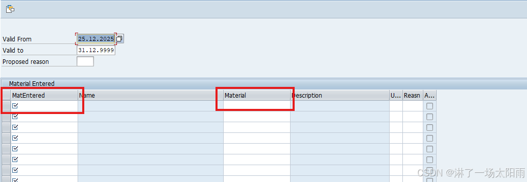 前面的是你会在前台输入的material,在你敲回车之后,后面的material会把你输入的material替代。不过这个会被很多的因素或者前置条件。比如说需要这个material要有对应的主数据视图,要有对应的库存之类的,否则会报错。但所有的条件都没有问题之后,后面的material就会取代掉前面的material。