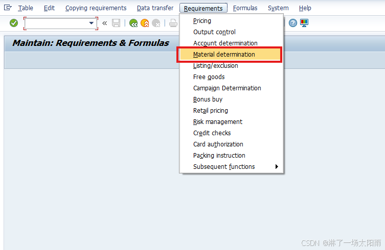 这个物料确定(Material determination)是全局的配置,也就是说不会区分销售组织或者工厂之类的,会对所有的销售组织或者工厂都起效。