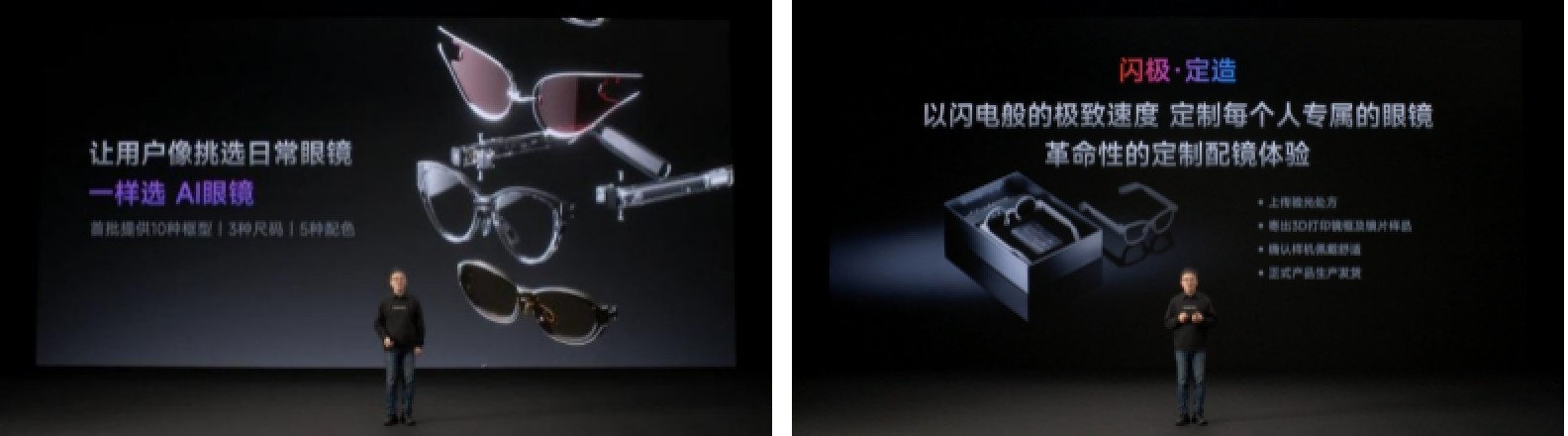 此外,闪极 L1以"千人千面"为设计理念,推出十余种框型、3种尺码及至少5种材质配色方案,覆盖多元审美需求。同时配备物理遮挡式镜头盖与支持快速换电的便携换电仓,兼顾隐私安全与长效续航。针对配镜需求,闪极投入数千万元构建闪极·定造服务体系,通过AI精准匹配、3D打印试戴等流程,为用户提供个性化配镜解决方案。