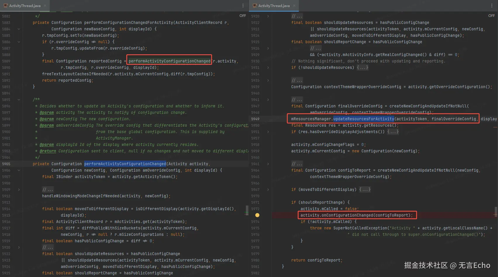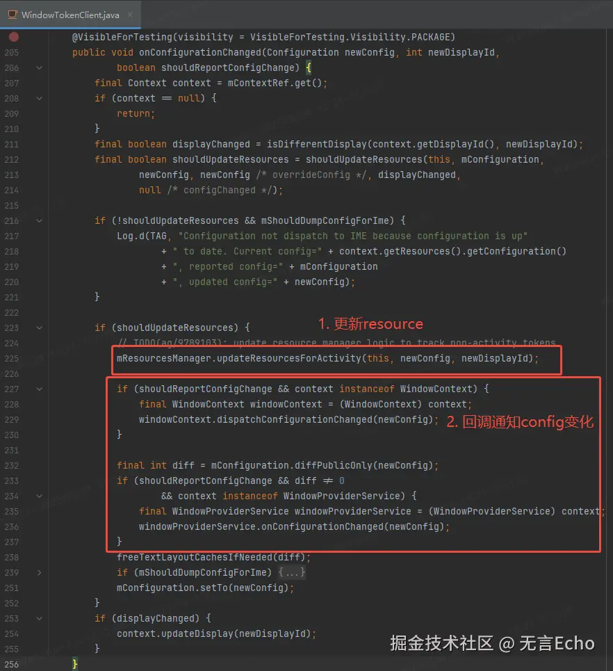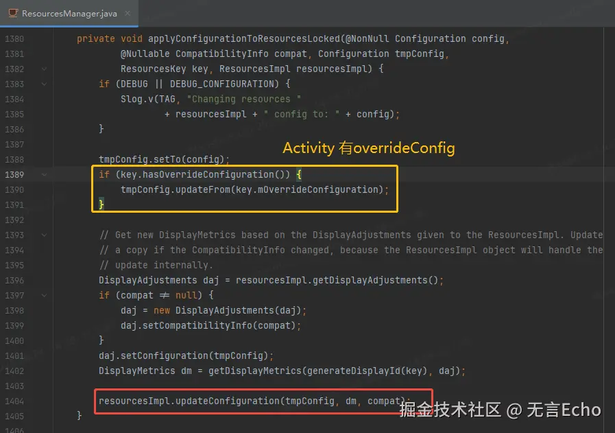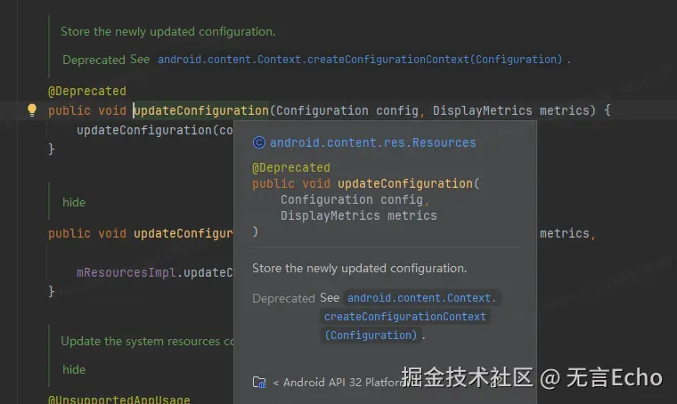 updateConfiguration,这个方法其实早已废弃不推荐使用了,但是发现目前还有不少人在用,而且使用这个修改config之后,可能会导致读取资源错误。例如强制改深色模式,但是后续读出来还是有部分浅色模式的资源。
