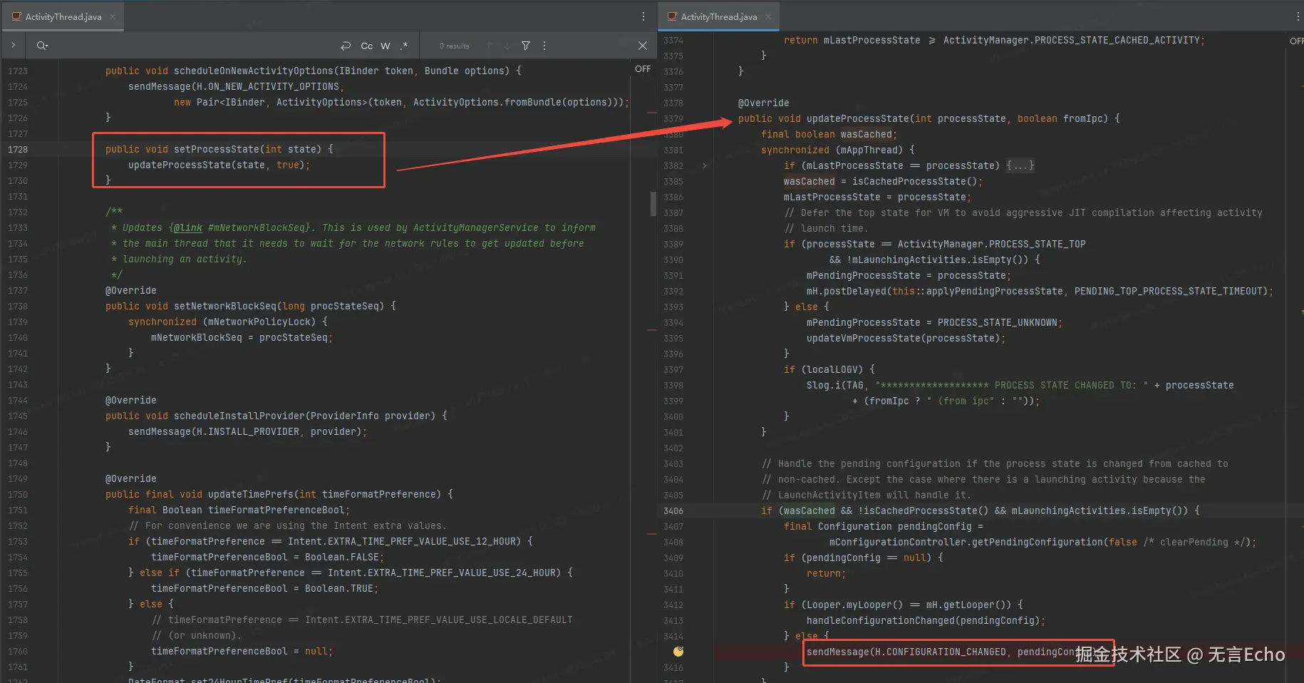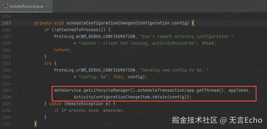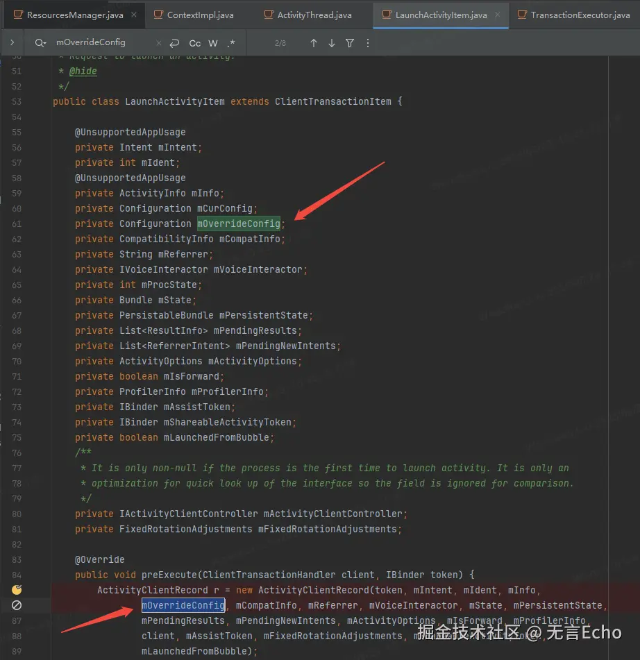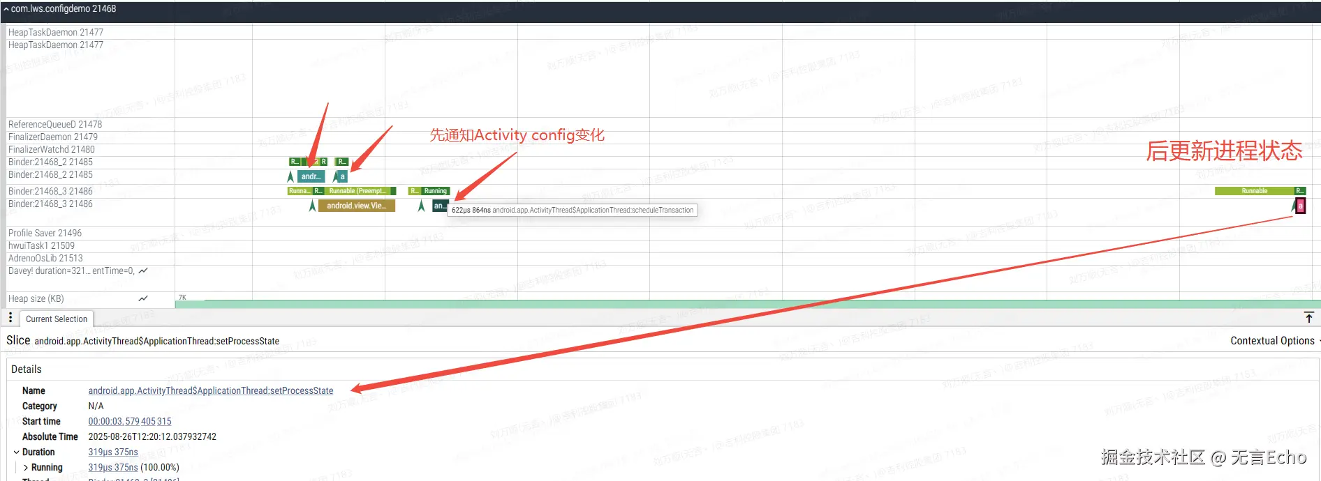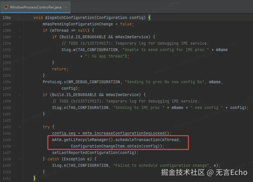 - ConfigurationChangeItem会比ActivityConfigurationChangeItem先发送,即app端会先收到App的config,再收到Activity的config,但是: 进程在Cache状态时即使收到App的config也不会立即处理。