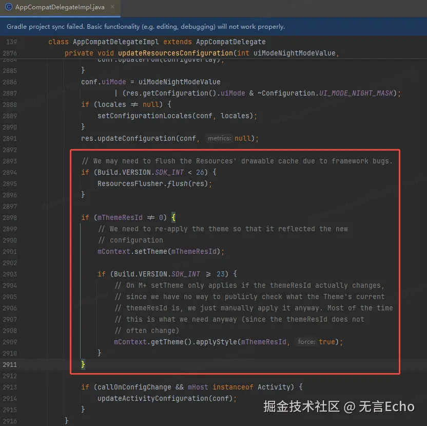 (先走原生流程更新成正确的资源,然后经过AppCompatDelegate又更新回旧的模式了)