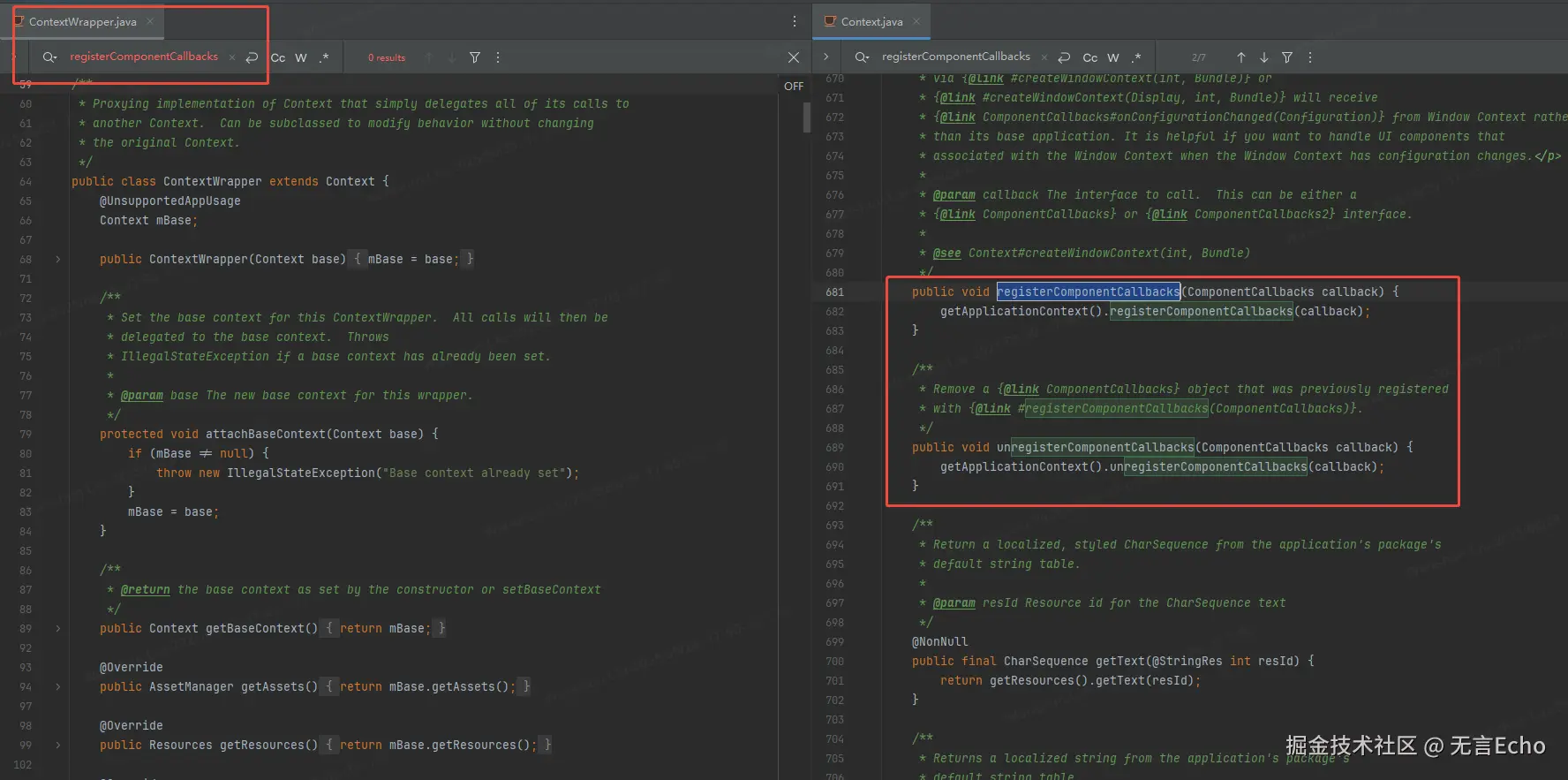 ContextWrapper没有重写这个方法,Context是默认注册到Application中了。