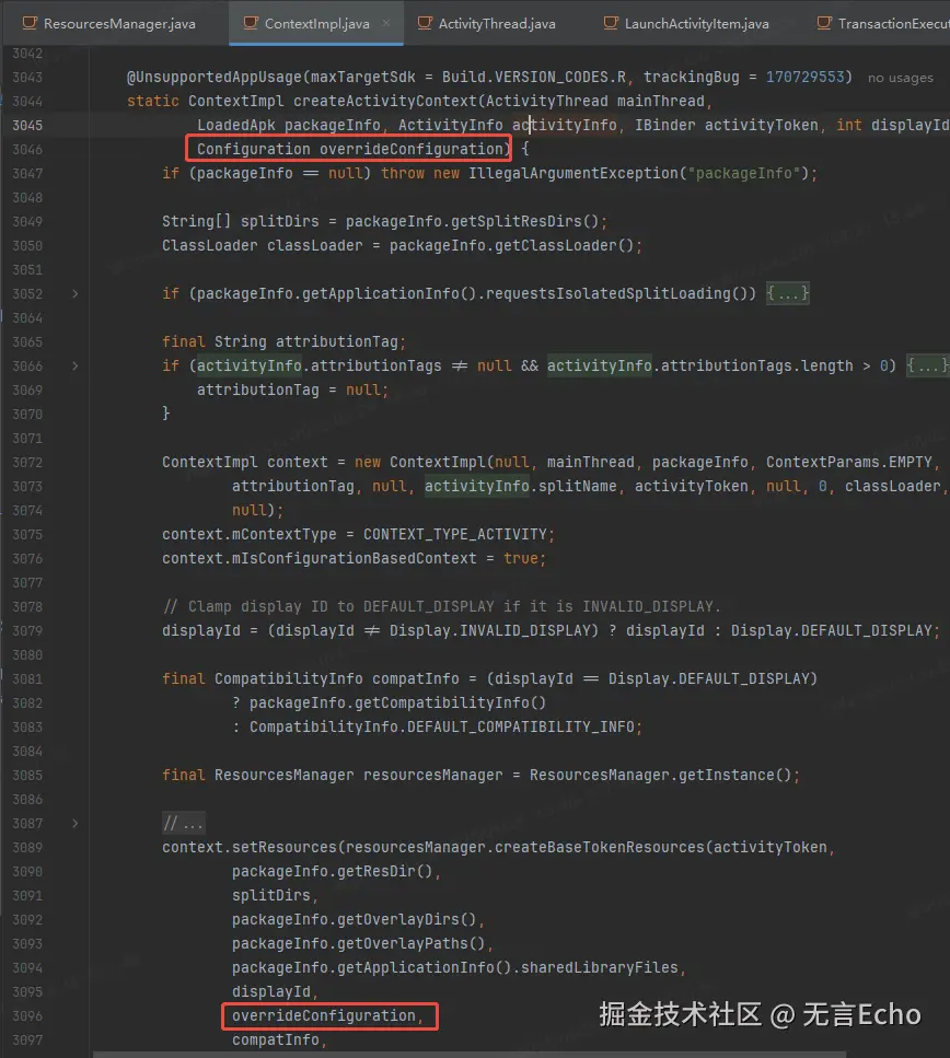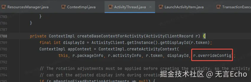 启动Activity时,系统在LaunchActivityItem中传来的,创建Activity的context时就会使用这个overrideConfig创建Resources