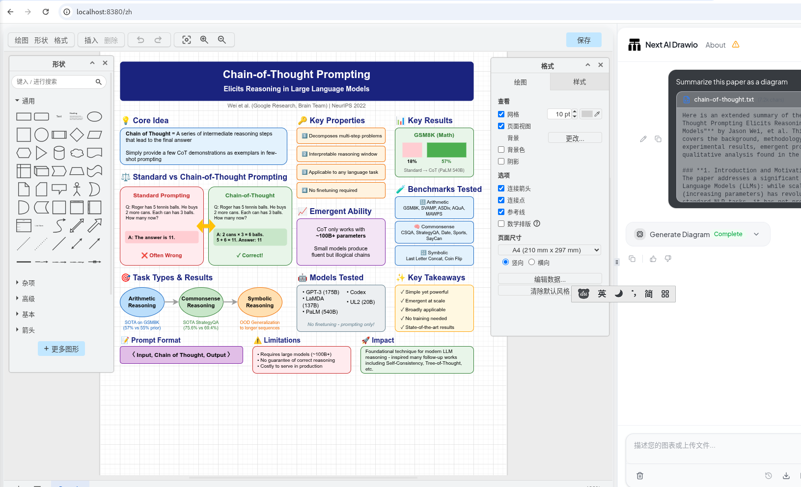 next-ai-draw-io 是一个基于 Next.js + AI 能力 的在线绘图工具,支持通过 OpenAI 兼容接口 调用大模型生成流程图、架构图等。
