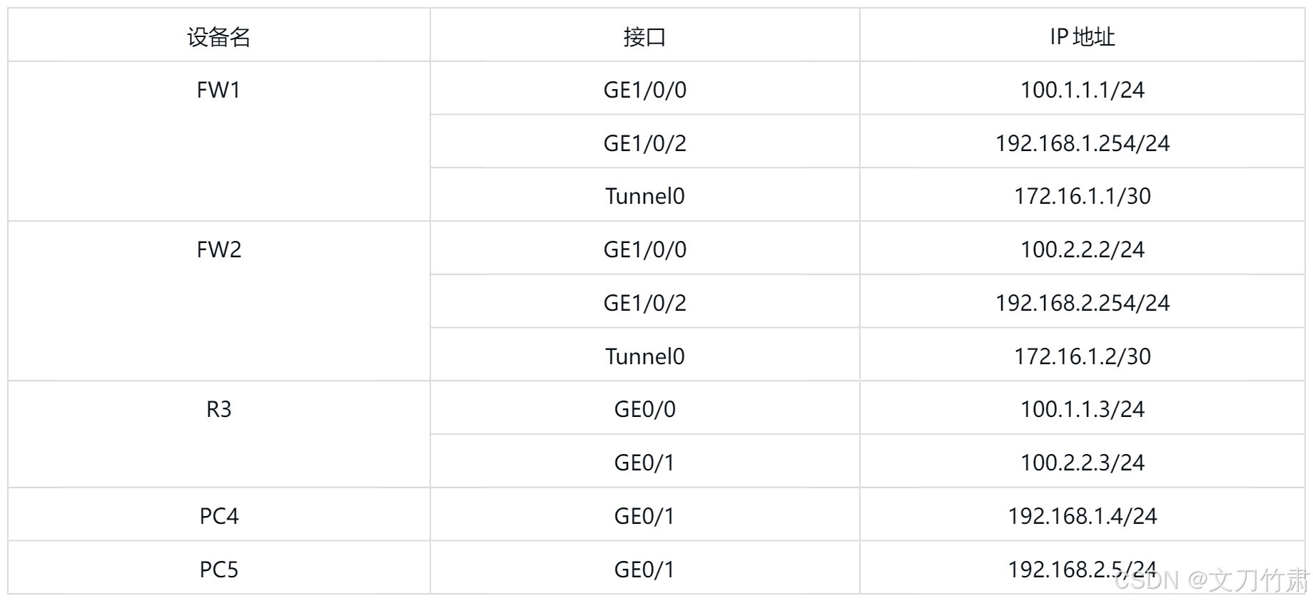 [FW1-Tunnel0]ip address 172.16.1.1 30 //设置Tunnel0接口IP地址为172.16.1.1,掩码为30位