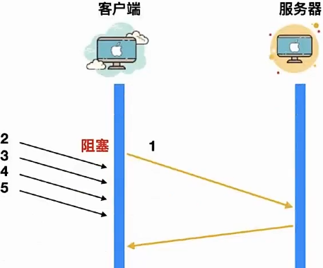 等到请求1被处理完毕后,才能逐个发出,一旦请求1因为某些原因没有抵达服务器,或者请求因为网络阻塞没有及时返回,影响的就是所有后续请求,导致后续请求无限阻塞下去,问题就变得比较严重了。