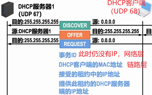 DHCP协议:DHCP服务器有赖于DHCP协议为主机动态分配IP地址等一系列配置信息,其中的机制值得深思。(比如服务器和主机借助UDP发送数据包)