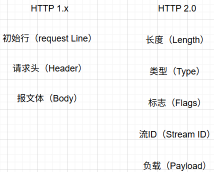 HTTP 1.x和HTTP 2.0使用的不同的报文格式: