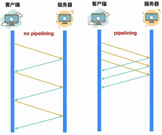 - 浏览器阻塞 (HOL blocking):浏览器会因为一些原因阻塞请求,浏览器对于同一个域名,同时只能由6个连接(这个根据浏览器内核不同可能会有所差异),超过浏览器最大连接限制,后续请求就会被阻塞