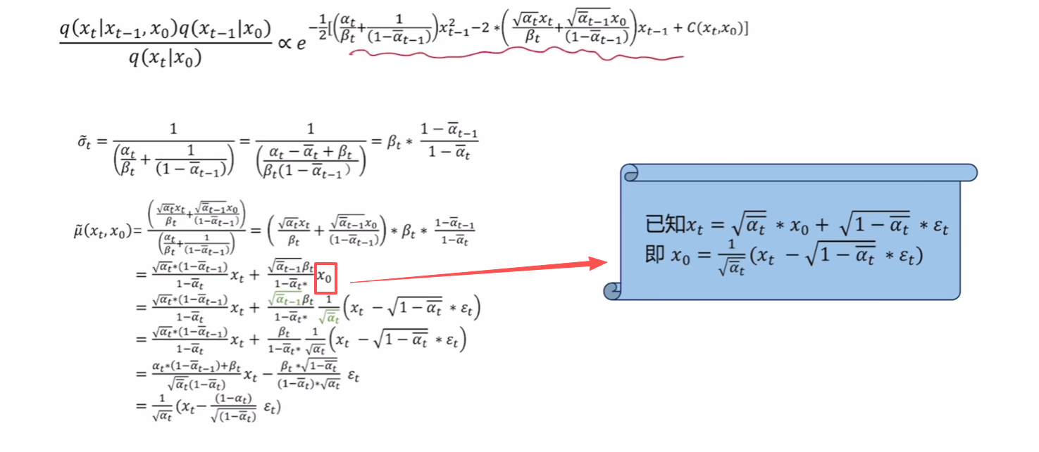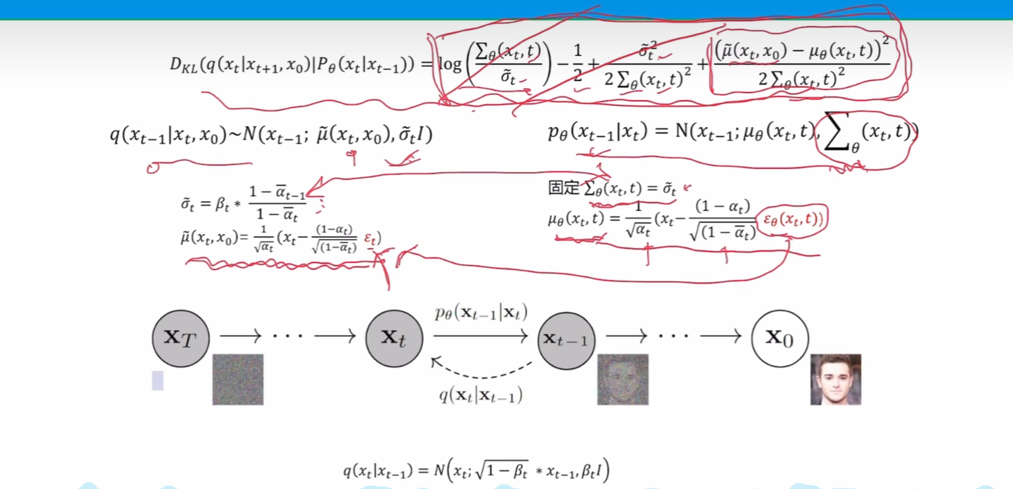 - 为什么定义为高斯分布:为了保持正向和逆向处理一致,前面说明了正向的q就是高斯分布。