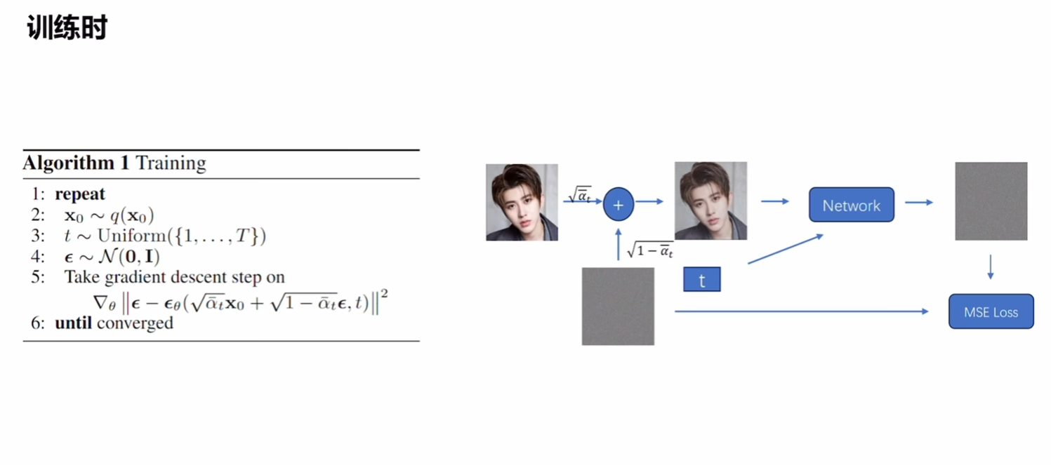 这张图又重新回到了我们的目标,训练预测噪声。 - 方差与噪声无关,直接使两边一致。