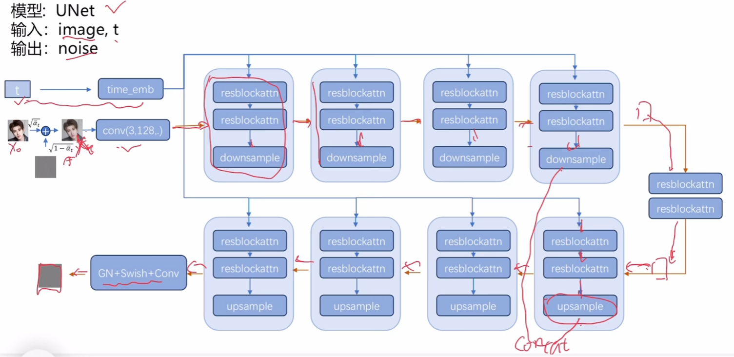 time_emb:时间步嵌入。告诉模型当前是哪一步,方便控制模型每一步干什么