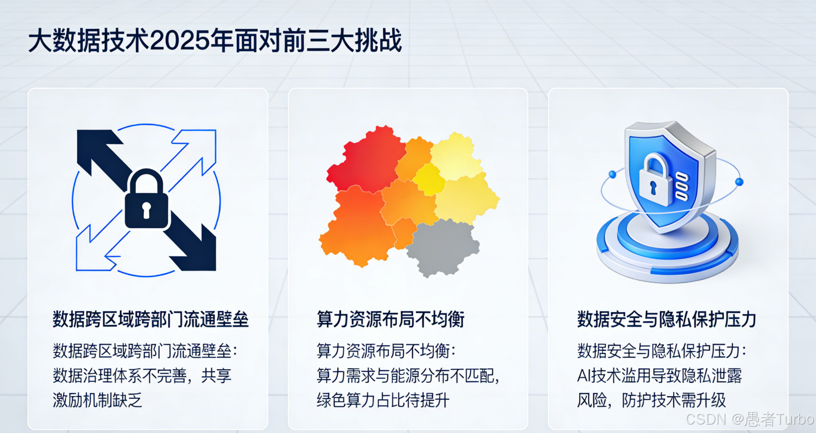 尽管大数据技术在2025年取得了显著进展,但仍面临多重挑战。首先是数据跨区域、跨部门流通仍存壁垒,流动效率有待提升;其次是算力资源布局不均衡,制约大数据应用的普惠发展;第三是数据收集、使用与流转中,安全防护与隐私保护问题仍面临压力。