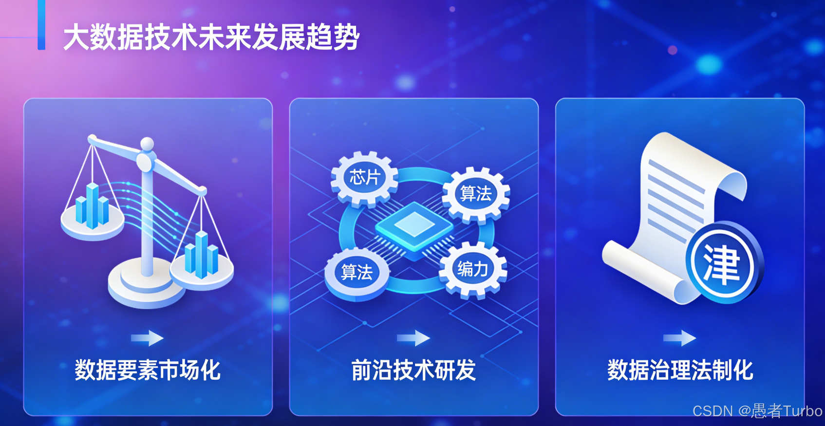 展望未来,大数据技术将沿着数据要素市场化、前沿技术研发和数据治理法制化进程三大方向持续演进。