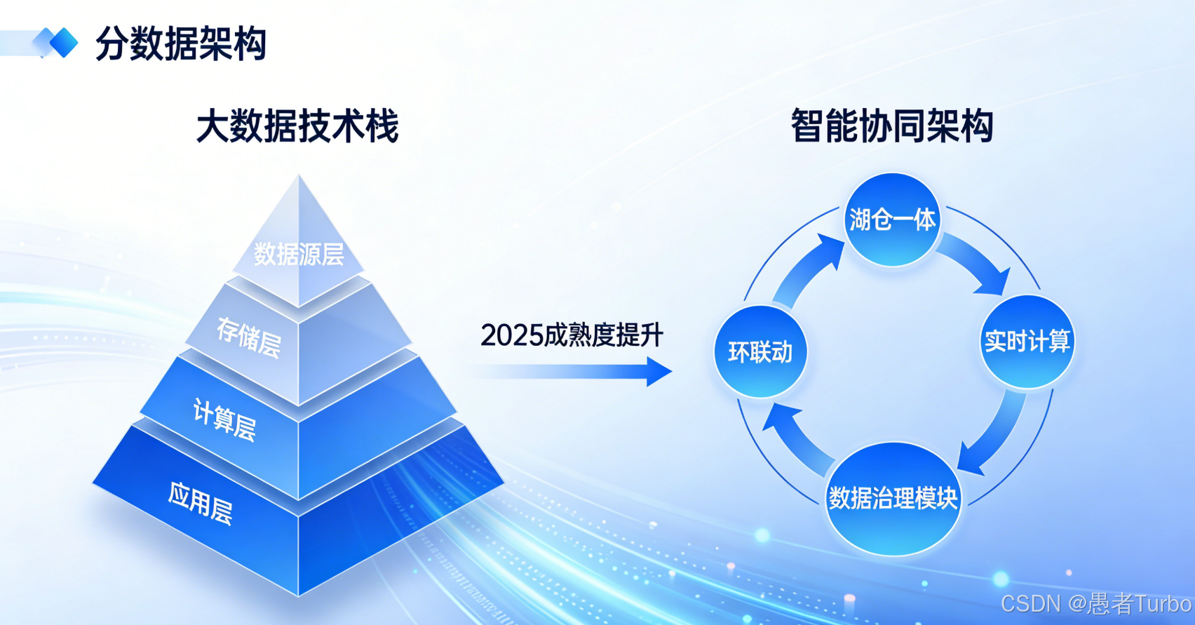 2025年,大数据技术栈经历了重大演进,从传统的分层架构向智能化、协同化方向发展。这一演进主要体现在湖仓一体、实时计算、数据治理等技术的成熟度和应用场景上。