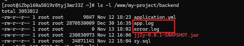 输入:tail -f /www/my-project/backend/app.log后发现,