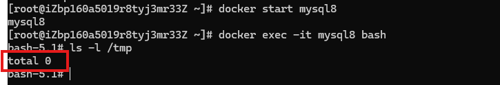 这个容器的/tmp目录是空的,没有任何文件(包括之前后端所有复制的xxx.sql都没了,重新复制一下)。