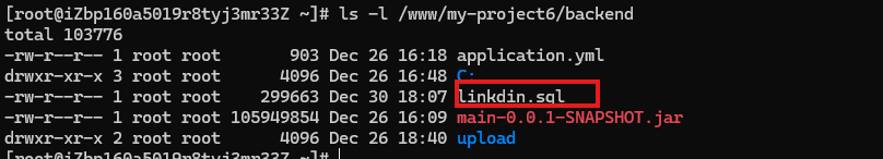 scp /本地路径/xxx.sql root@服务器IP:/www/my-project6/backend/