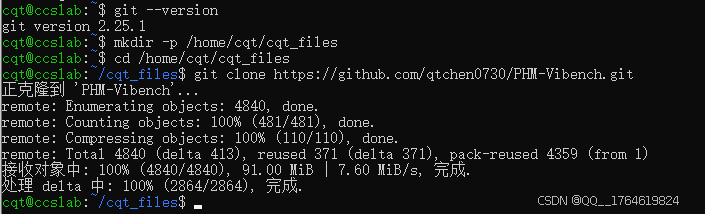 以克隆到/home/cqt/cqt_files/ 下为例: