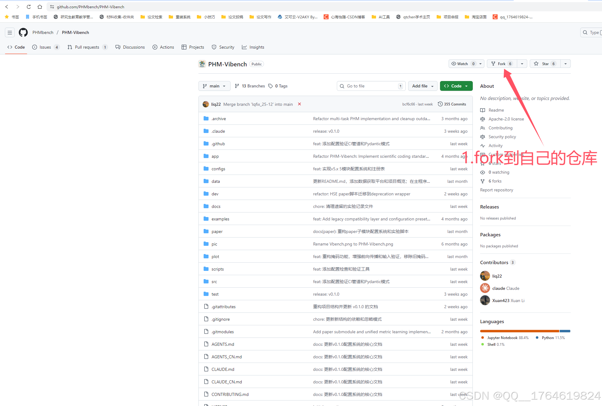 1.先将别人的项目fork到自己的仓库