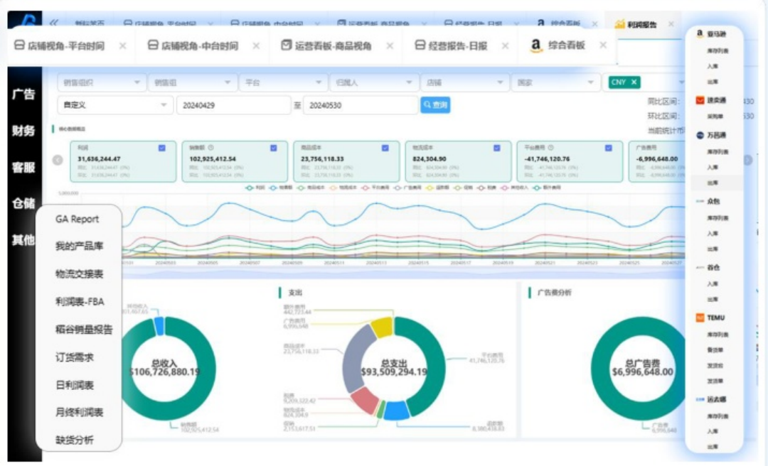 - 费用分摊规则:提供按重量、体积、订单金额等多种分摊模型,支持头程运费按批次/库存/商品多维度归集,满足精准成本核算需求