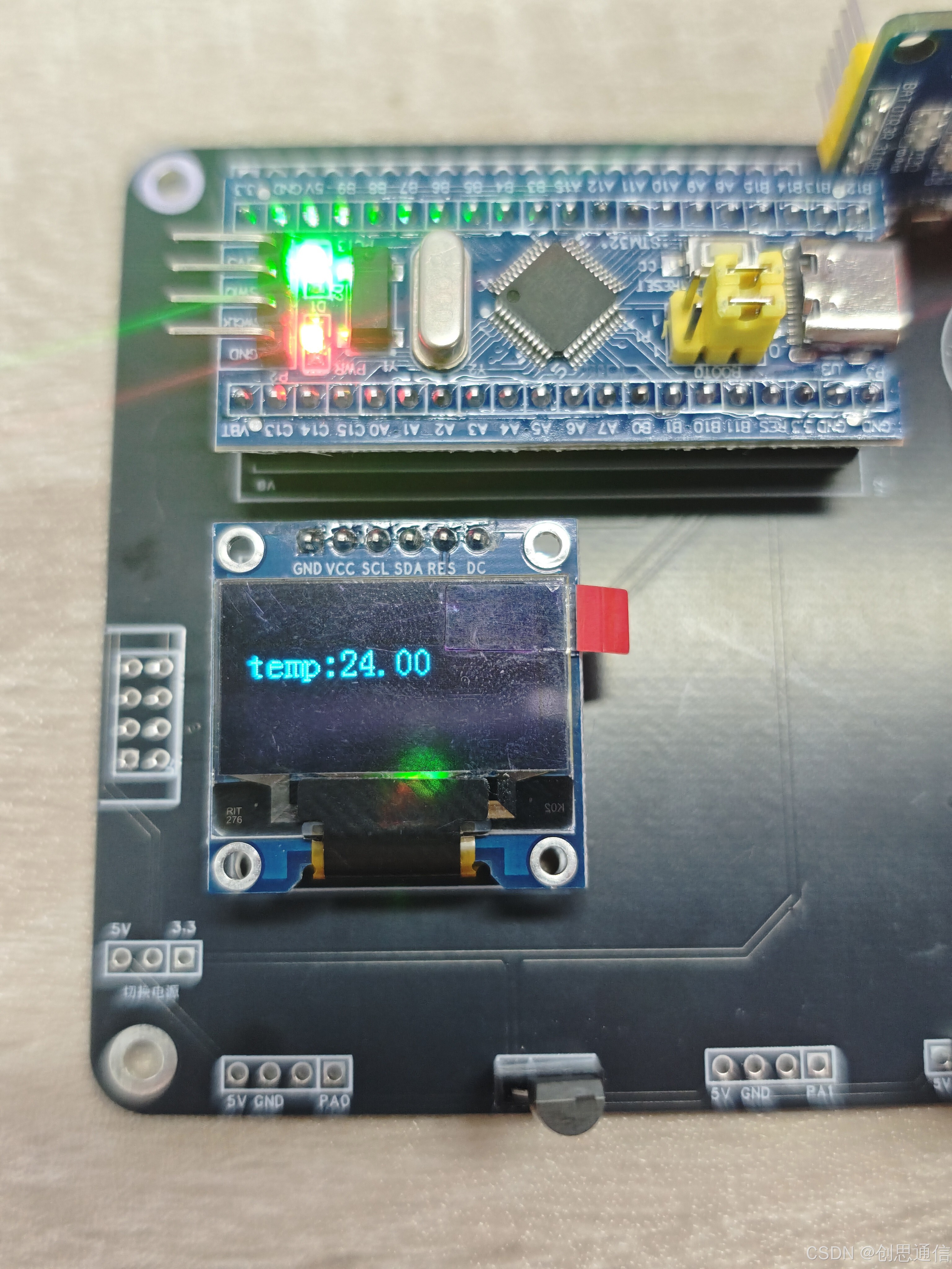 • 解析温度数据:将温度高字节和低字节拼接为16位数据,根据符号位(高字节最高位)处理正负温度,再除以16得到实际温度值。
