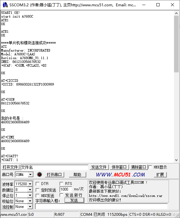 USART2_SendStr("AT+CIMI\r\n");//获取卡号,类似是否存在卡的意思,比较重要。
