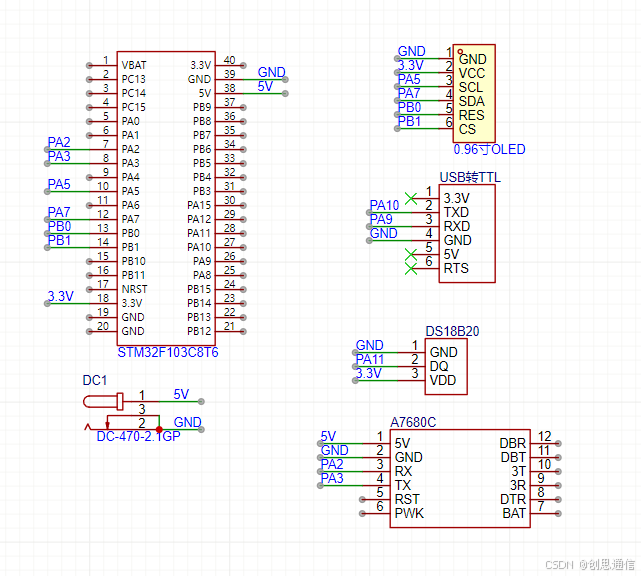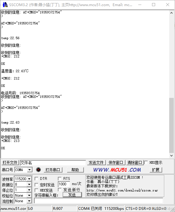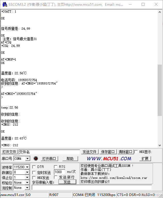 STM32F103C8T6采 DS18B20,通过A7680C 4G模块不断发送短信到手机