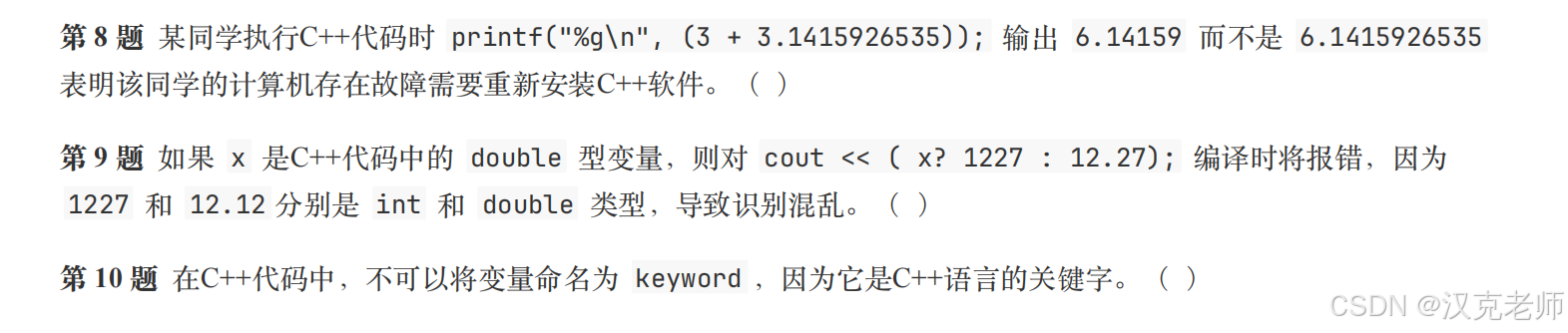 printf("%g", 3 + 3.1415926535) 输出 6.14159,说明电脑有问题。( )