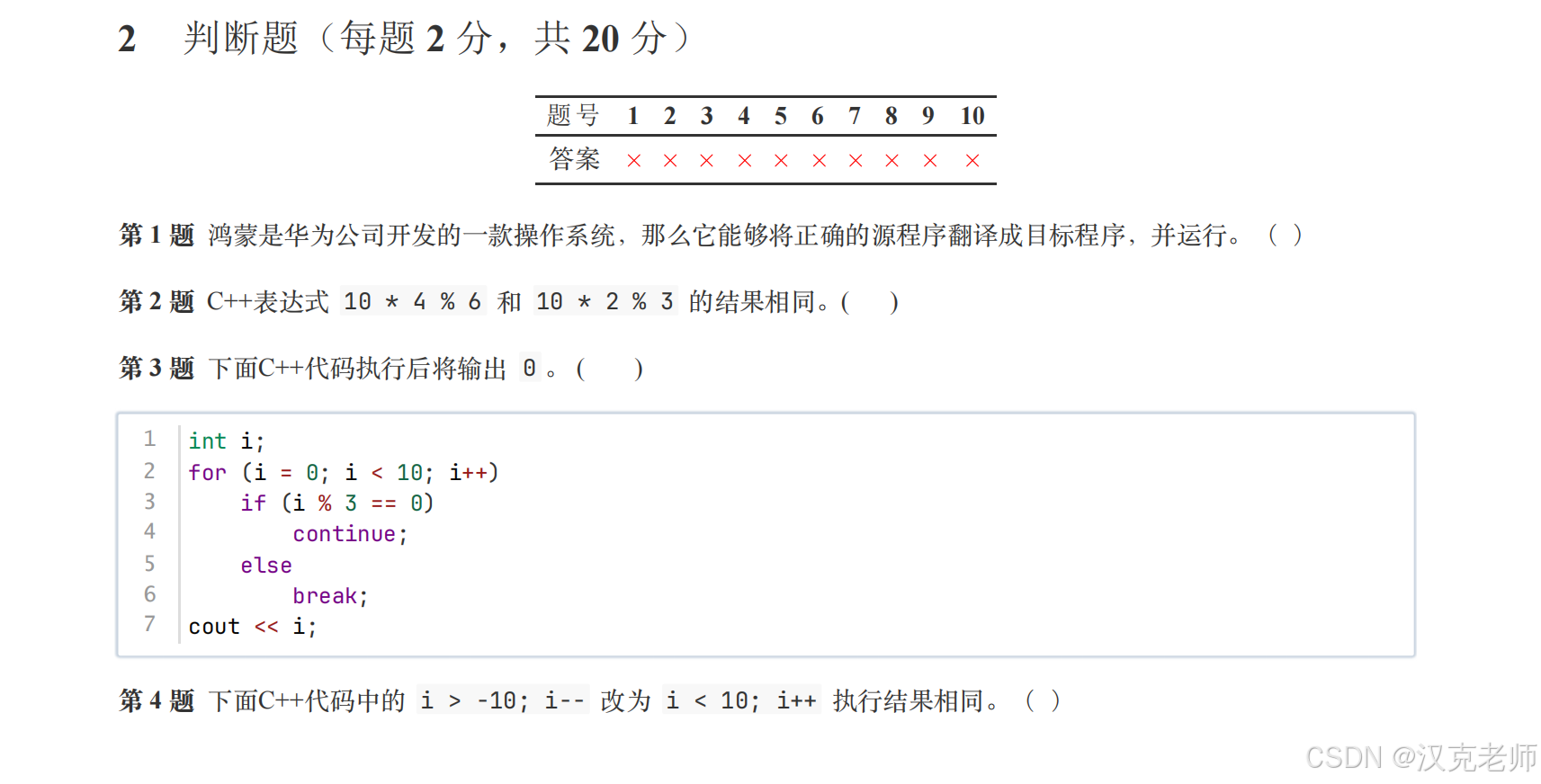 10 * 4 % 6和10 * 2 % 3的结果相同。( )