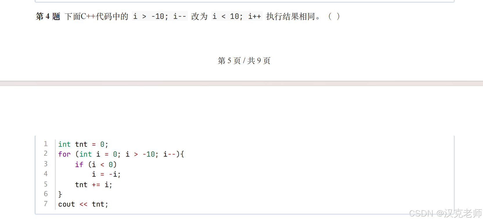 i > -10; i--改为i < 10; i++,执行结果相同。( )