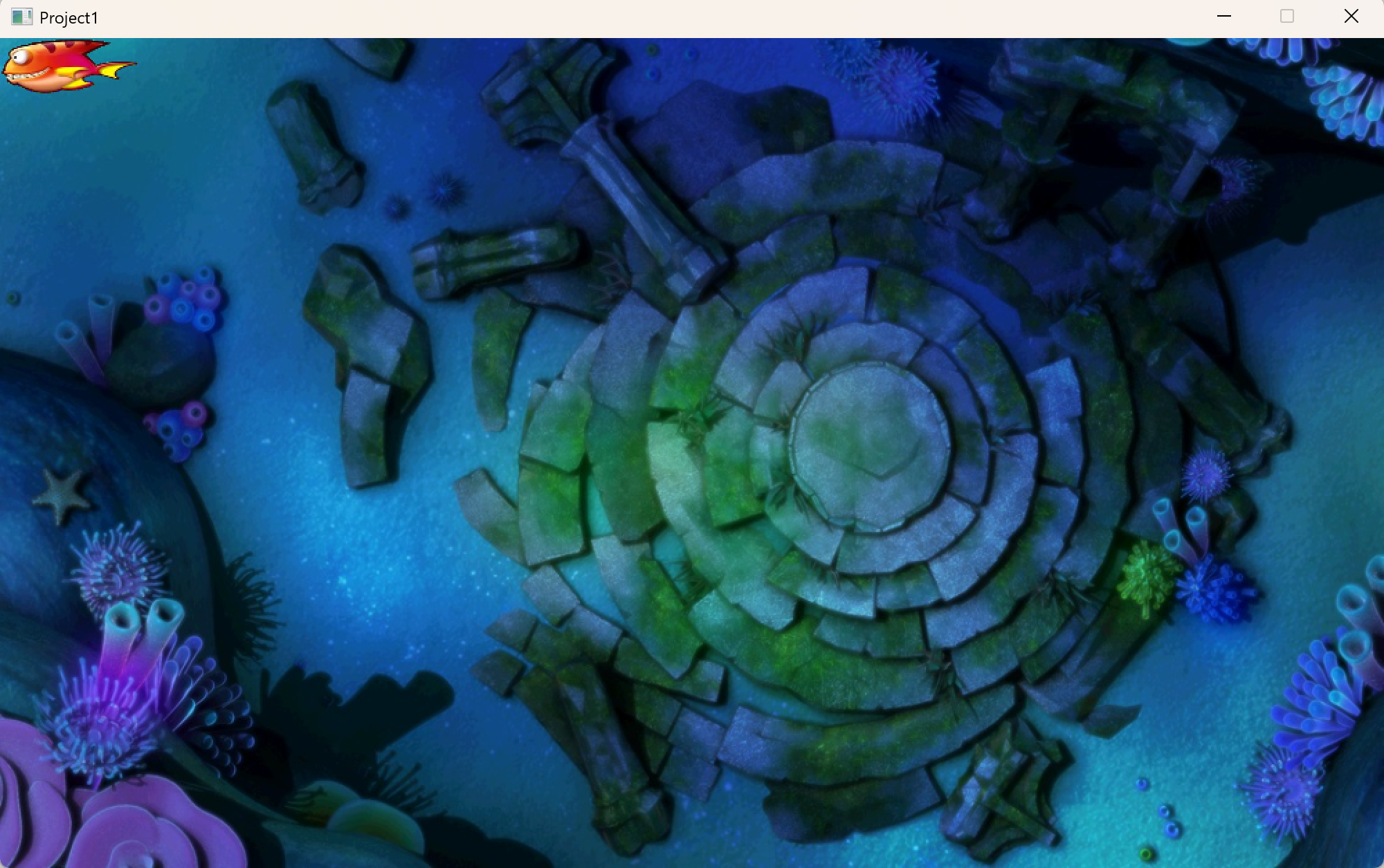 - 背景上显示一条静止的鱼(右侧朝向)。