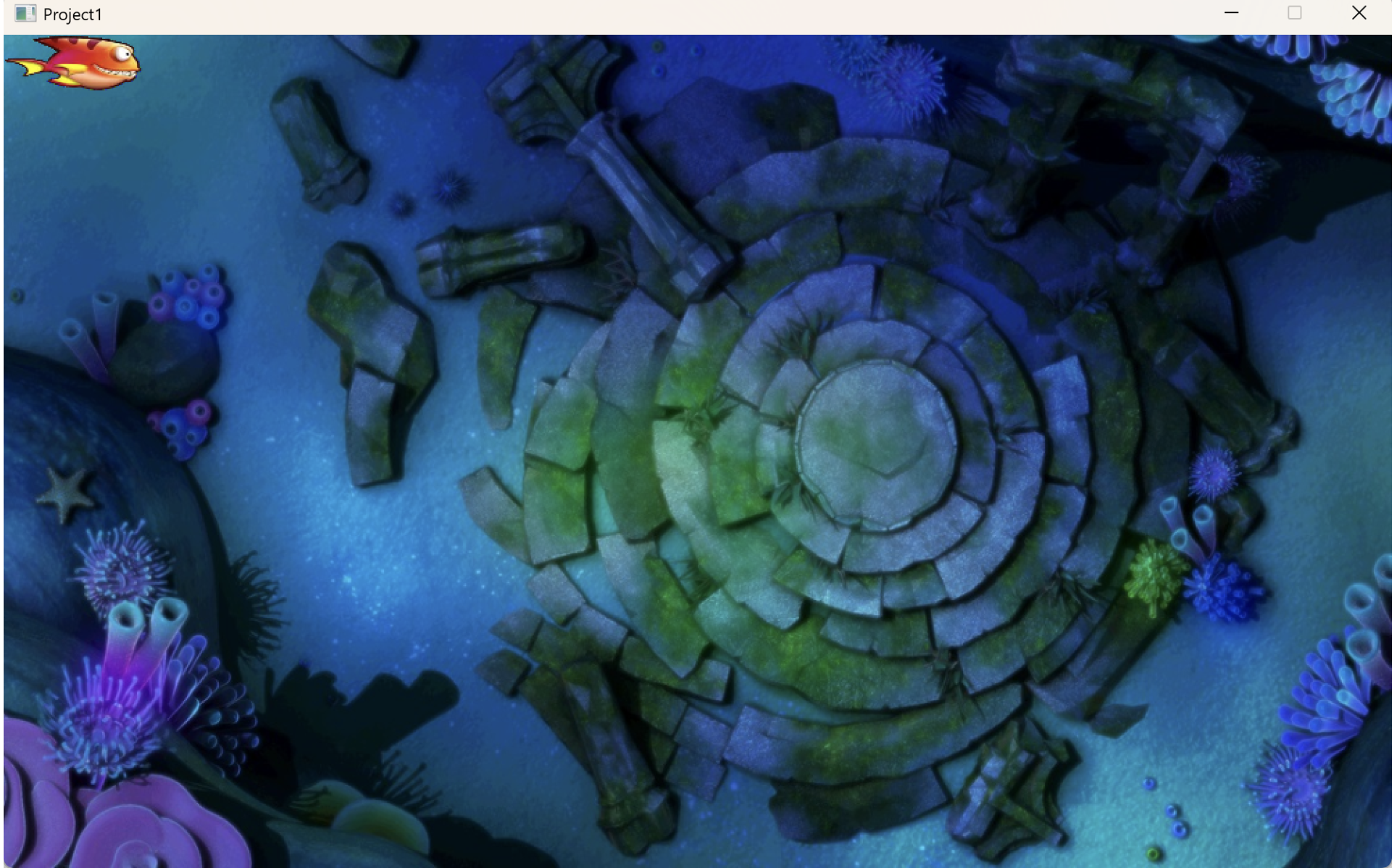putimage(300, 200, &fishImg); // 固定位置画鱼