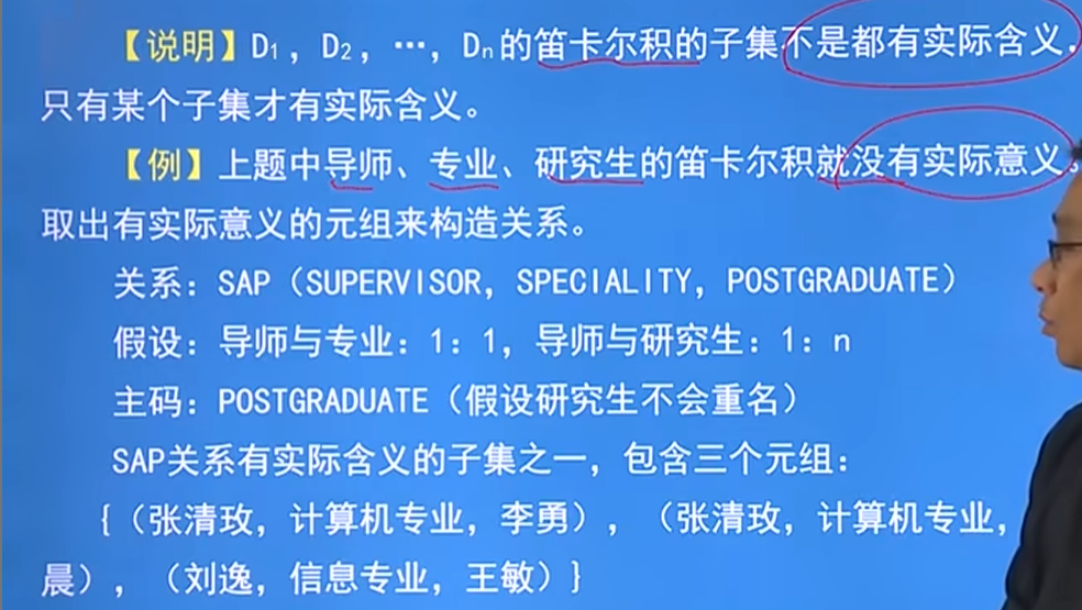 关系跟笛卡尔积的区别 笛卡尔积是所有的元组组合 关系是有实际意义的笛卡尔积的子集