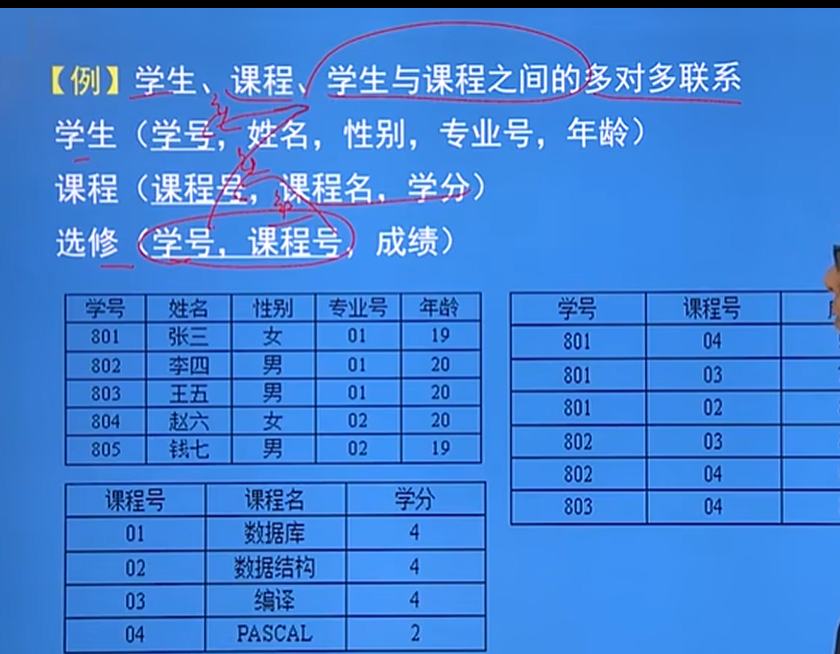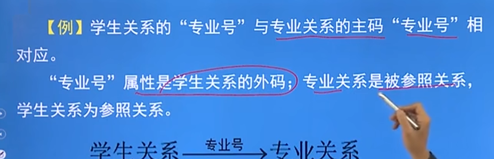 这里画横线是指 学生关系里引用的是专业关系的主码专业号,而不是专业号也是自己的主码