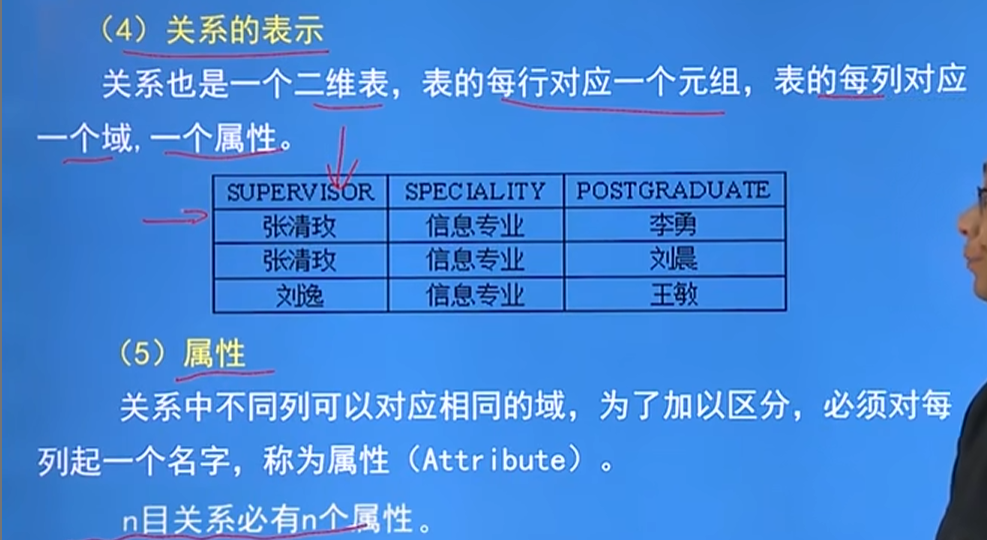 (张清玫,计算机专业,李勇),(张清玫,计算机专业,刘晨)等都是元组 就是前面关系模型中的一行