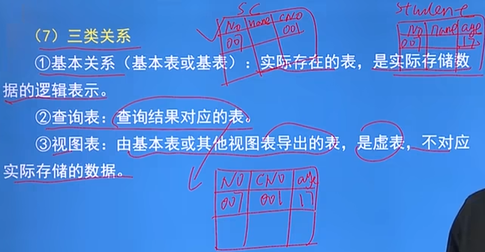 基本关系 是实际存在的表查询表是结果对应的表 比如下面两个选课表和学生信息表 我要查年纪和选课 返回的就是查询表 并且由于这个表示有两个基本表导出来的 因此又是虚表